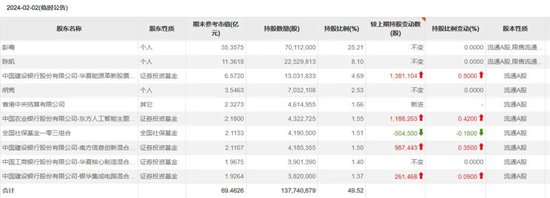 2月6日,天承科技披露了关于前十大股东持股情况的公告。截至1月31日,交银施罗德数据产业灵活配置混合型证券投资基金较2023年三季度末增持25.21万股,总持股数达92.34万股,占上市公司总股本的1.59%。