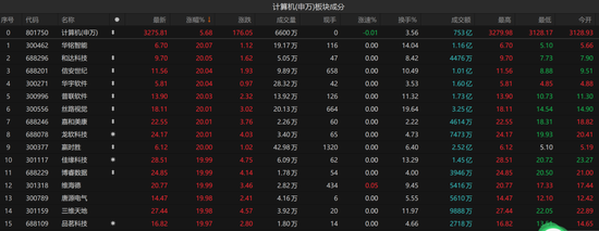 计算机板块迎来大爆发,板块整体大涨5.68%,板块内狂掀涨停潮,共计324只个股收涨,仅6只个股收跌。华铭智能、和达科技、信安世纪、华宇软件(维权)、普联软件等数十股涨停。