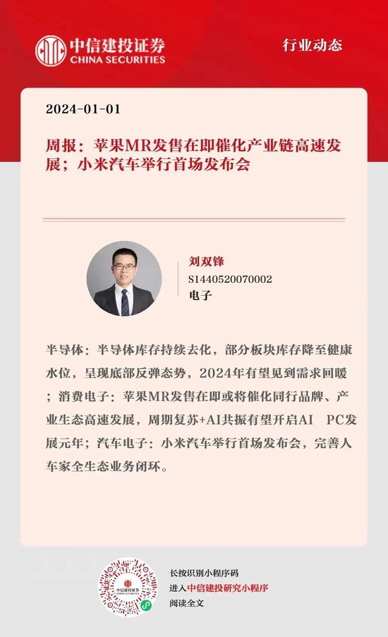 证券研究报告名称:《周报:苹果MR发售在即催化产业链高速发展;小米汽车举行首场发布会》