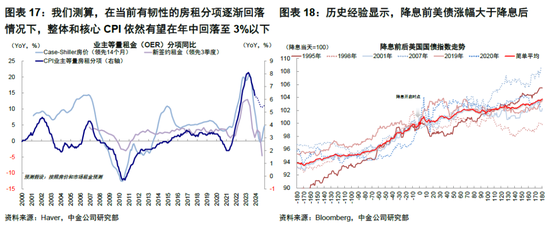 我们此前多次提示,仅从基本面因素并不支持美联储过早降息,1月以来资产“折返跑”也是对过去降息预期计入太多的再修正。不过,只要整体通胀回落和降息方向不变,方向可能比降息时点更重要。我们测算CPI回落方向并不改变。当前市场对美国2024年底CPI一致预期为2.5%。也因此,降息方向较为明确,只不过何时降息和降息幅度仍在博弈。在这个前提下,当前方向比时点重要,仓位比节奏重要,“折返跑”后反而可提供更好机会。从历史经验看,在软着陆和美联储预防式降息过程中,配置节奏先长债黄金、后美股大宗(《降息开启前的交易策略海外资产配置月报》)。接下来,重点关注2月22日1月FOMC会议纪要发布。