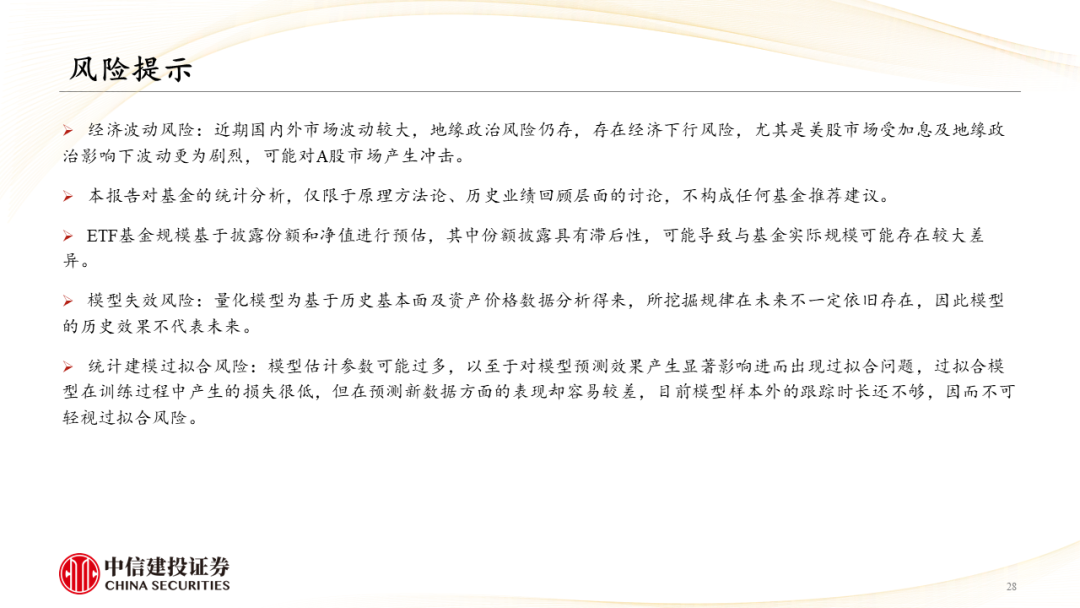 模型失效风险:量化模型为基于历史基本面及资产价格数据分析得来,所挖掘规律在未来不一定依旧存在,因此模型的历史效果不代表未来。