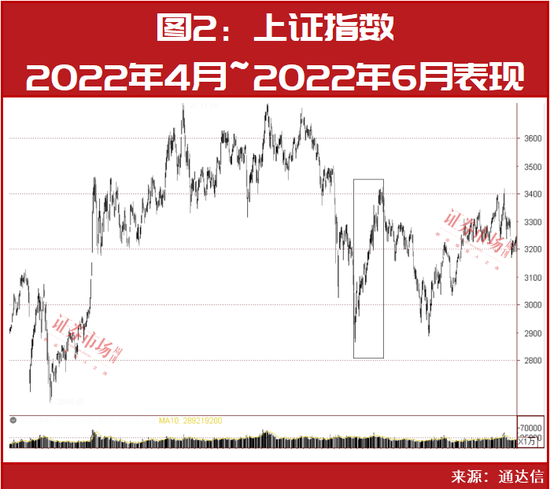 2022年5月,北上资金同样出现多个交易日净流入金额超过百亿的现象,当时同样对应市场的阶段底部,如上证指数于2022年4月底触及阶段低点之后即迎来了反弹上涨。2022年4月27日~2022年6月28日,累计上涨了近20%(见图2)。