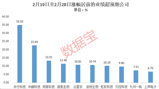 涨幅居首的是并行科技,春节以来股价涨35.02%,公司涉及AIGC、算力等热门概念;中邮科技股价涨22.64%,2023年实现净利润0.72亿元。同享科技、诺泰生物分别涨13.31%、11.46%,其中诺泰生物春节以来获外资加仓,北上资金最新持股(2月27日)0.99%,较2月8日加仓0.36个百分点。