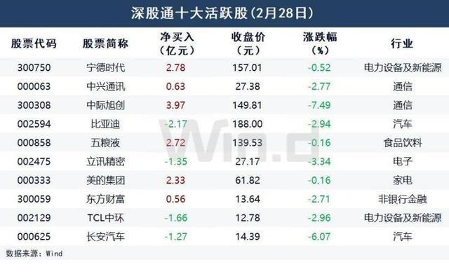 Wind数据显示,北向资金2月28日合计净流入13.4亿元。其中,沪股通净流入16.92亿元,深股通净流出3.52亿元。