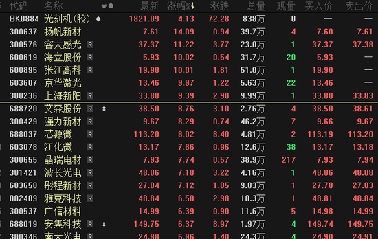 光刻机题材表现最亮眼,蓝英装备、新莱应材(维权)、张江高科等个股涨停,扬帆新材、容大感光大涨超11%。存储芯片、先进封装等细分题材也大幅上涨。