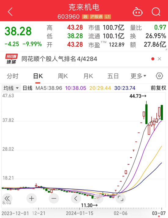 克来机电昨日晚间发布风险提示称,近期关注到有传闻将公司列为新质生产力概念股。新质生产力概念广泛,涵盖多个领域。公司现有主业仍为智能装备与汽车零部件,属于传统制造业领域,相关产品未发生变化。公司2023年度研发投入占公司营业收入比例较2022年度基本持平,和同行业可比上市公司不存在显著差异,不排除存在部分投资者借助相关概念炒作公司股票的可能性,敬请广大投资者理性投资,注意投资风险。