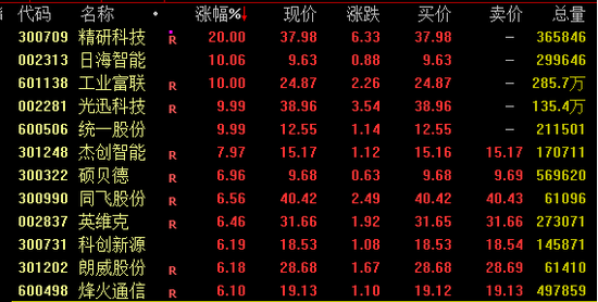 液冷服务器概念再度走强,截至收盘,精研科技、日海智能(维权)、工业富联、光迅科技、统一股份等涨停,同飞股份、英维克、烽火通信等涨超6%。