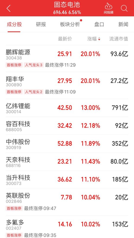 新能源赛道股上午大涨后,午后维持震荡。宁德时代收盘大涨超14%,固态电池、光储、新能源汽车等细分板块均涨幅居前。