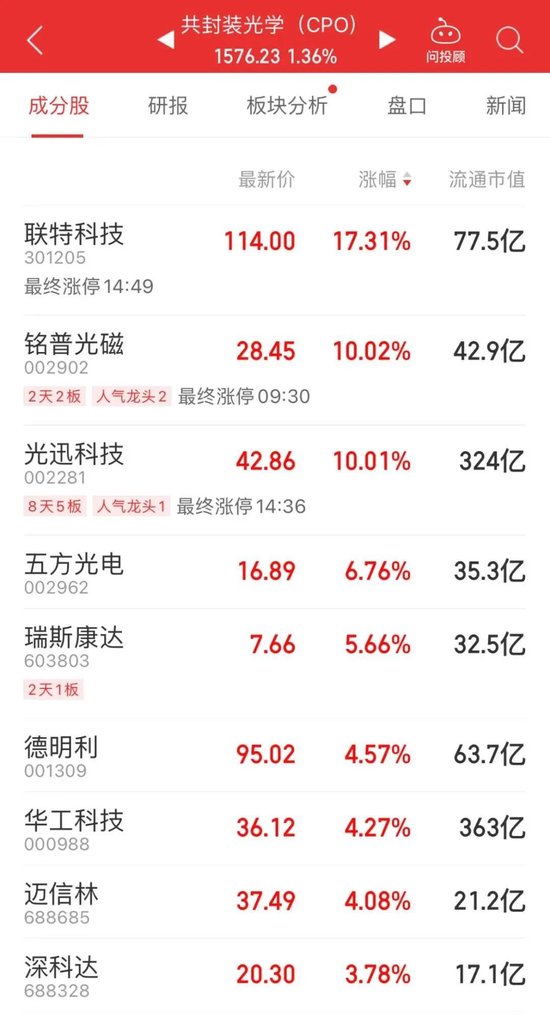 3月11日午后,光模块(CPO)、6G等概念止跌回升,光模块概念股光迅科技涨停,此外兆易创新、工业富联、华工科技等纷纷走强。