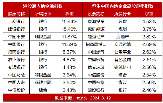 其一是港股通内地金融指数,股息率7.67%,跟踪产品是港股通金融ETF(513190)。这只指数差不多是65%的银行加31%的证券和保险,相当于是港股金融行业的全家桶。
