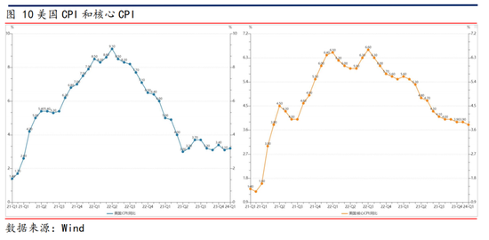 2月美国CPI涨幅高于预期。2024年2月,美国未季调CPI同比升3.2%,为去年12月以来新高,预期升3.1%,前值升3.1%;季调后CPI环比升0.4%,预期升0.4%,前值升0.3%;未季调核心CPI同比升3.8%,为2021年5月以来新低,预期升3.7%,前值升3.9%;环比升0.4%,预期升0.3%,前值升0.4%。