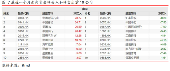 2)市场估值处于低位,恒生指数和科技指数均显著低于机会值。南向资金持续活跃。