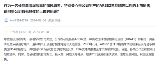 作为一名长期血清尿酸高的痛风患者,特别关心贵公司生产的AR882三期临床以后的上市销售,请问贵公司有无具体的上市时间表?