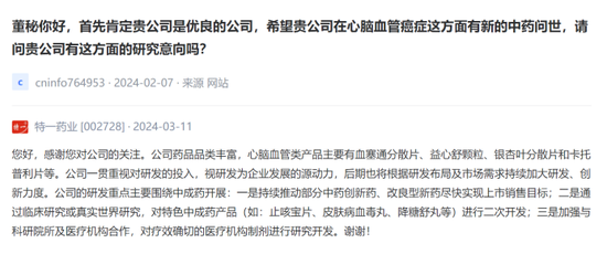 董秘你好,首先肯定贵公司是优良的公司,希望贵公司在心脑血管癌症这方面有新的中药问世,请问贵公司有这方面的研究意向吗?