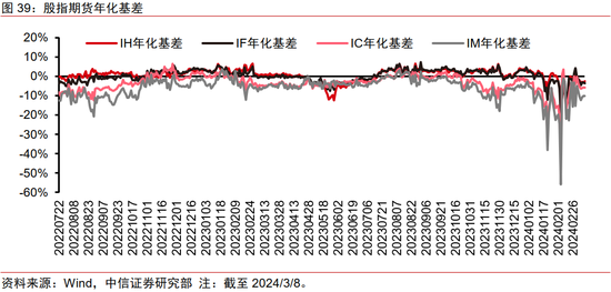 估值:从估值水平角度来看,沪深300/中证800的PB和PE均处于历史较低分位数水平;从股债性价比角度来看,沪深300/中证800的ERP均在近10年的85%分位数以上(截至2024/3/8),权益市场潜在投资回报显著。