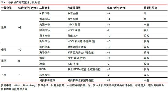 A股:预计宏观经济向好、高质量发展扎实推进、A股盈利周期稳步回升,估值层面吸引力水平不断提升,流动性宽松环境下中央汇金增持的托底作用逐步显现,国内政策对资本市场的呵护力度不断增强,但海外环境不确定性有所增加。综合判断A股的配置性价比【高】。