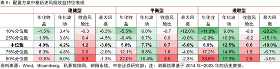 1)稳健型方案:年化收益中枢4.9%,50%的概率位于1.6%~8.3%区间;