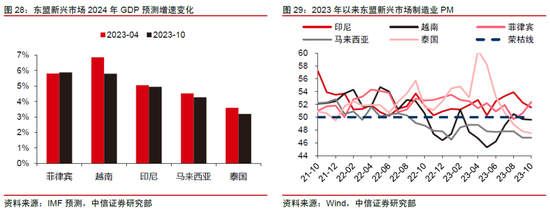 韩国:尽管高利率等紧货币政策或仍将抑制私人消费和设备投资,但考虑到韩国经济较深度依赖于国际贸易带来的出口增长,韩国出口近期边际回暖,半导体周期的触底也抬升了市场对韩国出口触底反弹的预期,韩国经济在外需修复的助力下有望实现温和复苏。