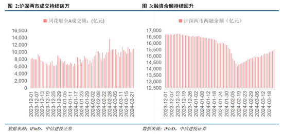 海外强美元交易,北向资金流出。上周北向资金流出77.76亿元,较比前一周的328.2亿元流入额大幅减少,强美元压力下,外资流出。国内方面,本周两融余额继续回升,截至3月21日,两融余额为15476.37亿元。