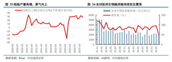 2)制造:分化显著,新能源盈利低迷,传统工业品表现平淡。新能源供给压力显现,23Q4以来产业链价格大幅下滑、24年1-2月价格低位震荡,但价格同比依旧大幅负增约40-60%;传统制造产销偏弱,工业机器人、成型机床产量同比负增约10%;高端制造方向上如船舶、重卡等表现亮眼,产量累计同比高增20%以上;汽车受降价及需求前置影响,盈利预期整体平淡,智能车预计呈结构性高景气;军工方面,由于中期调整等影响,订单释放偏弱,预计业绩承压。