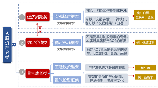 3、对于传统风格和行业比较的失效,我们重新划分的三类资产,分别在交易什么逻辑?