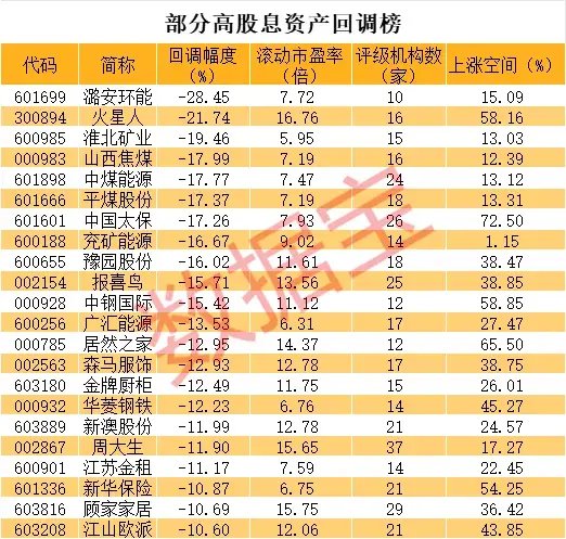 证券时报·数据宝梳理出砸出深坑的优质高股息资产,筛选条件包括评级机构数在10家以上、按照2022分红和最新股价计算的股息率超3%、最新滚动市盈率在20倍以下、最新价较年内高点回调超10%的个股,结合行业筛选后合计有22只个股入选。其中,平煤股份、中煤能源、豫园股份等个股已披露2023年年报,平煤股份拟每10股派9.9元(含税),按最新收盘价计算股息率超8%;中煤能源拟每10股派4.42元(含税),按最新收盘价计算股息率超4%。