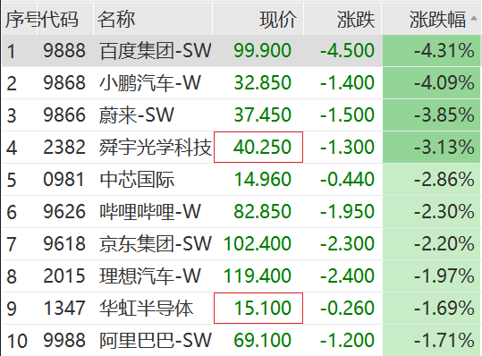 港股市场早间低开:恒生指数跌0.53%,恒生国企跌0.72%,恒生科技跌0.98%。百度集团、小鹏汽车跌超4%,领跌恒生科技。