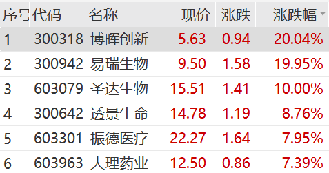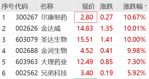3月27日上午,医药板块盘中冲高,走出局部行情。博晖创新、易瑞生物20CM涨停,圣达生物、金达威、金河生物等多股涨停,尔康制药涨超10%,大理药业、兄弟科技等跟涨。
