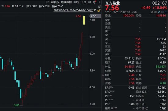 作为A股锆业龙头,东方锆业近期股价也连续大涨,4月1日、2日均涨停。