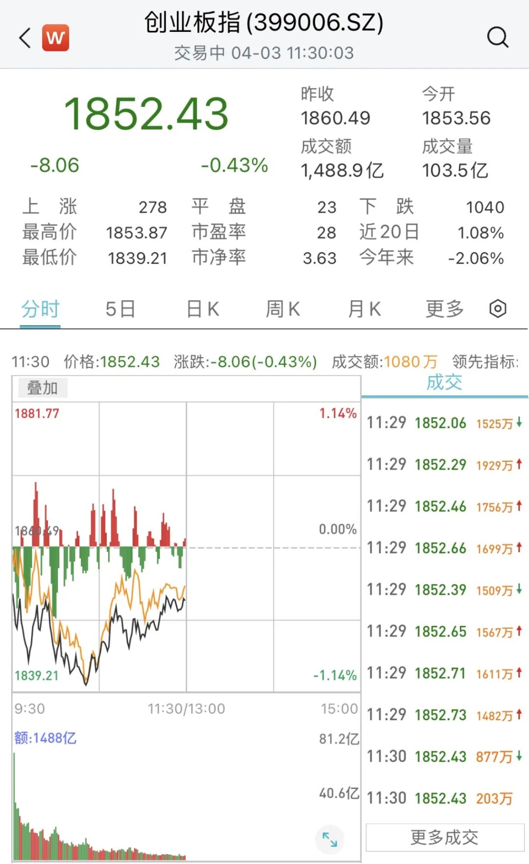 今天A股三大指数震荡调整,创业板指一度跌超1%,截至午间收盘,沪指跌0.24%,深成指跌0.25%,创业板指跌0.43%。