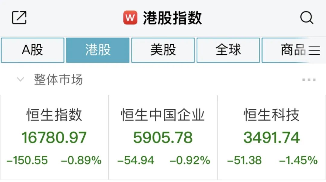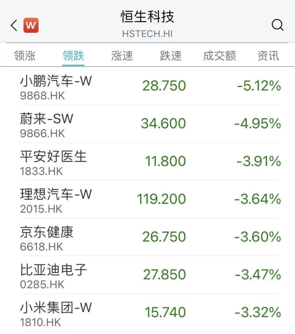 港股方面,三大指数走弱,恒生科技指数跌幅一度扩大至1.5%。港股汽车股多数走低,小鹏汽车跌超5%。