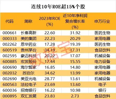 数据宝统计,在2013年前上市且已披露2023年年度报告的A股公司中,12股连续10年ROE维持在15%以上,它们在各自行业内具有较高的市场地位和影响力。