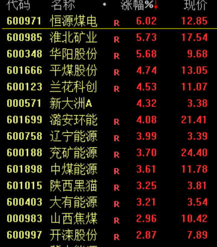 “煤飞色舞”行情持续走强,其中黄金股领涨。