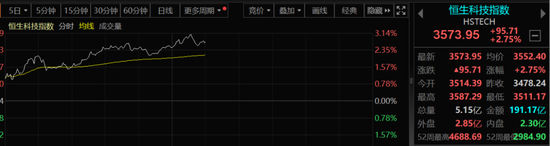 然而,今天早盘,香港市场的表现却非常好。恒指和国企指数涨幅一度超过2%,恒生科技指数表现更强。A50的表现亦明显强于A股。