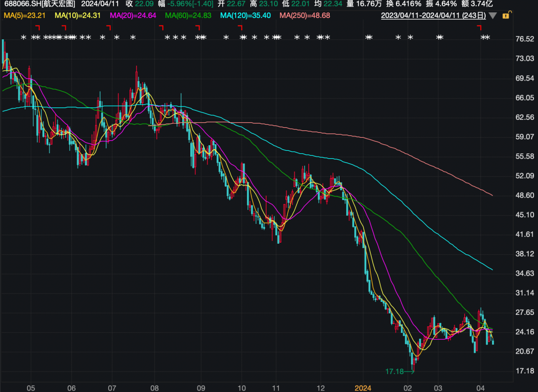 值得一提的是,航天宏图近期因低空经济概念,股价有所表现,但最新财报数据披露,公司去年净利润亏损3.74亿元,去年四季度股价下跌超17%,今年以来继续跌47.70%。