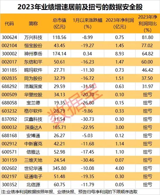 2023年业绩方面,多只数据安全概念股业绩向好或扭亏。