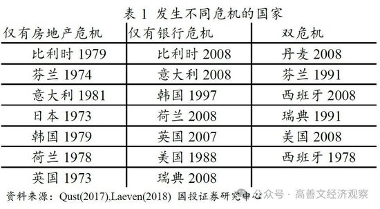 仅有房地产危机而没有发生银行危机多数发生在70-80年代,可能的背景是当时全球通胀较高,各国利率处于较高水平,导致杠杆的使用较为困难,房地产的危机并未导致银行的危机。但这一部分时间较早,数据的可得性较差,也并非本文的重点。