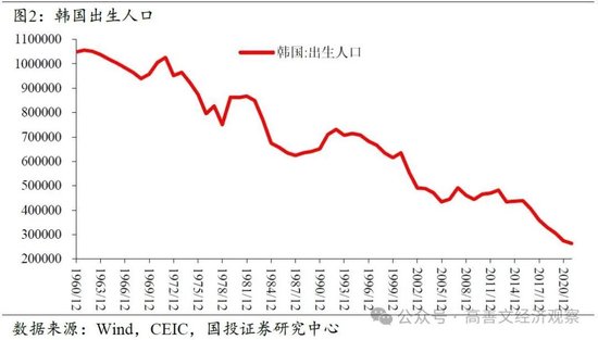 其次看出生人口,韩国出生人口在1960-1970年维持在年均100万左右,随后逐渐回落,在90年代回落到60-70万量级,2000年后再次回落至40万量级并持续近二十年。1980-1990年间中国出生人口在年均2400万,随后逐渐回落,在2000年稳定至1600万量级,在2018年再次回落,可能下降至900万量级。在快速发展40年后,中国和韩国的出生人口均较起点下跌接近60%。