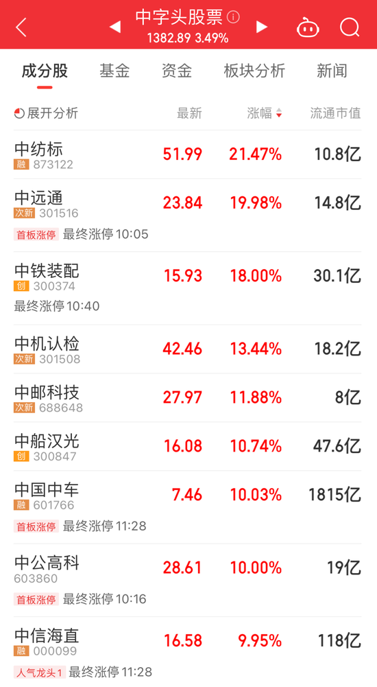 中字头个股持续拉升,中国中车、中远通涨停,中铁装配、中船汉光等涨超10%。国盛证券表示,2023年多家央企分红率已有明显提升,后续在政策约束下,分红动力有望增强,分红率有望进一步提升。该券商预计后续各上市央国企市值管理举措有望陆续出台,增强央国企市值管理动力,推动估值加快修复。