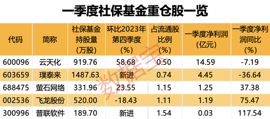 社保基金持股量居前的是璞泰来、云天化、飞龙股份,持股量分别为1487.63万股、919.76万股、520万股。