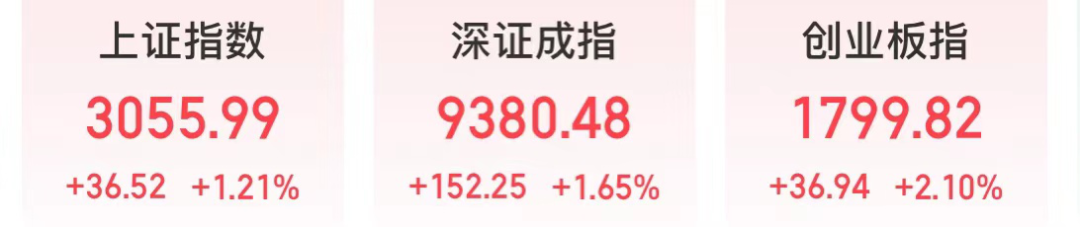 今天上午,上证指数上涨1.21%,深证成指上涨1.65%,创业板指上涨2.1%。
