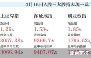 截至收盘,上证综指、深证成指、创业板指分别收涨1.26%、1.53%、1.85%;分别报3057.38点、9369.7点、1795.52点。