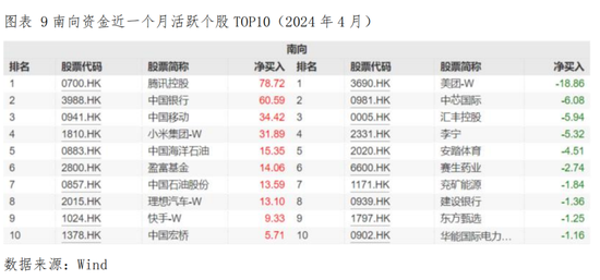 个股方面,近一个月腾讯控股(0700.HK)、中国银行(3988.HK)、中国移动(0941.HK)的区间资金流入最多,分别为78.72亿港元、60.59亿港元、34.42亿港元;流出最多的分别为美团-W(3690.HK)、中芯国际(0981.HK)、汇丰控股(0005.HK),流出金额分别为18.86亿港元、6.08亿港元、5.94亿港元。