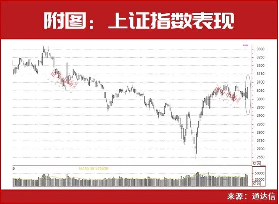 各大指数上演反包走势。今天,上证指数、创业板、深证指数均上涨超过2%,且均实现了对昨天阴线的反包,即今天纷纷收出实体阳线并多吞没昨天的实体阴线,这是一个市场转折的重要信号(见附图)。