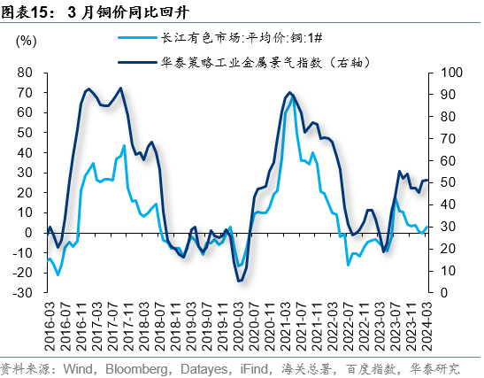 配置方面,在国内外风险转向之前,建议持续关注高分红回购+基本面修复的交集:1)结合企业分红能力及意愿,2024年家电/通信/非银/汽车/银行/纺服/煤炭的预计分红企业占比较高且预期力度较大;2)景气回升的行业或主要集中在:①出口链:全球制造业回暖的背景下,外需韧性的行业基本面或有望企稳,1-2月家电出口同比回升,外销韧性;②游戏:24年1-2月中国手游市场收入同增8.6%至359.42亿元,同时24年版号发放数量已连续3个月超过100款,行业供给侧结构稳定;③半导体:2月全球半导体销售额同比连续10个月回升;④周期资源品:近期铜/铝/石油价格持续上升。