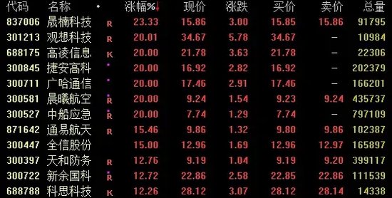 军工板块今日强势拉升,截至收盘,观想科技、高凌信息、捷安高科、广哈通信、晨曦航空、中船应急等“20cm”涨停。