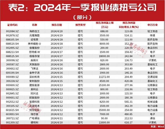 下面筛选了最新一批一季报业绩预告扭亏的公司名单,供大家参考,具体名单可见(表2)。