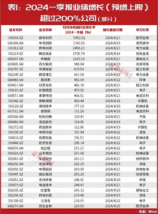 以一季报为例,当前,全A市场有约200家公司发布了一季报业绩预告;600余家公司正式披露了一季报。结合二级市场来看,高业绩弹性(如业绩增长在翻倍及以上)、扭亏是两个高预期差的重点领域,且也是最容易走出强势股的领域。