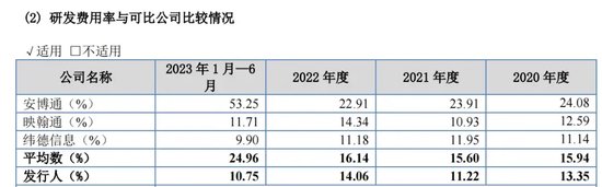 但IPO日报发现,对比同行来看,公司的研发费用率与同行尚存在一定的差距,报告期内,同行业可比公司的研发费用率均值分别为15.94%、15.60%、16.14%及24.96%。