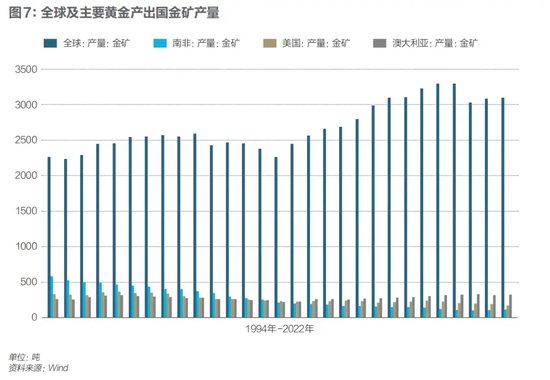 据估算,2022年全球黄金产量为3628吨,仅较同比上升1%。中国、俄罗斯、澳大利亚、美国和加纳为全球前五大黄金生产国。